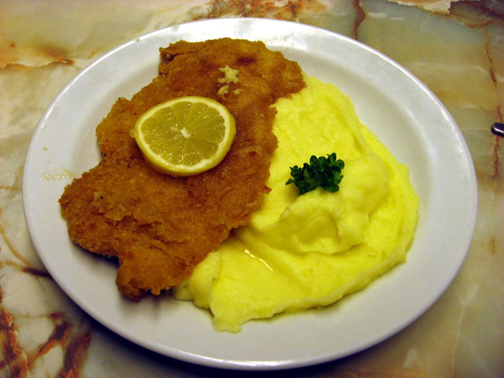 - 100g Smažený hermelín s vařeným bramborem, tatarská omáčka 79 Kč